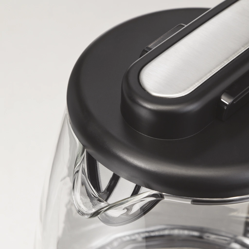 O recipiente de vidro sem fio e os detalhes em aço inox conferem um design elegante. Com funcão de desligamento automático após a fervura da água e proteção contra funcionamento sem água, você pode confiar na segurança deste produto.