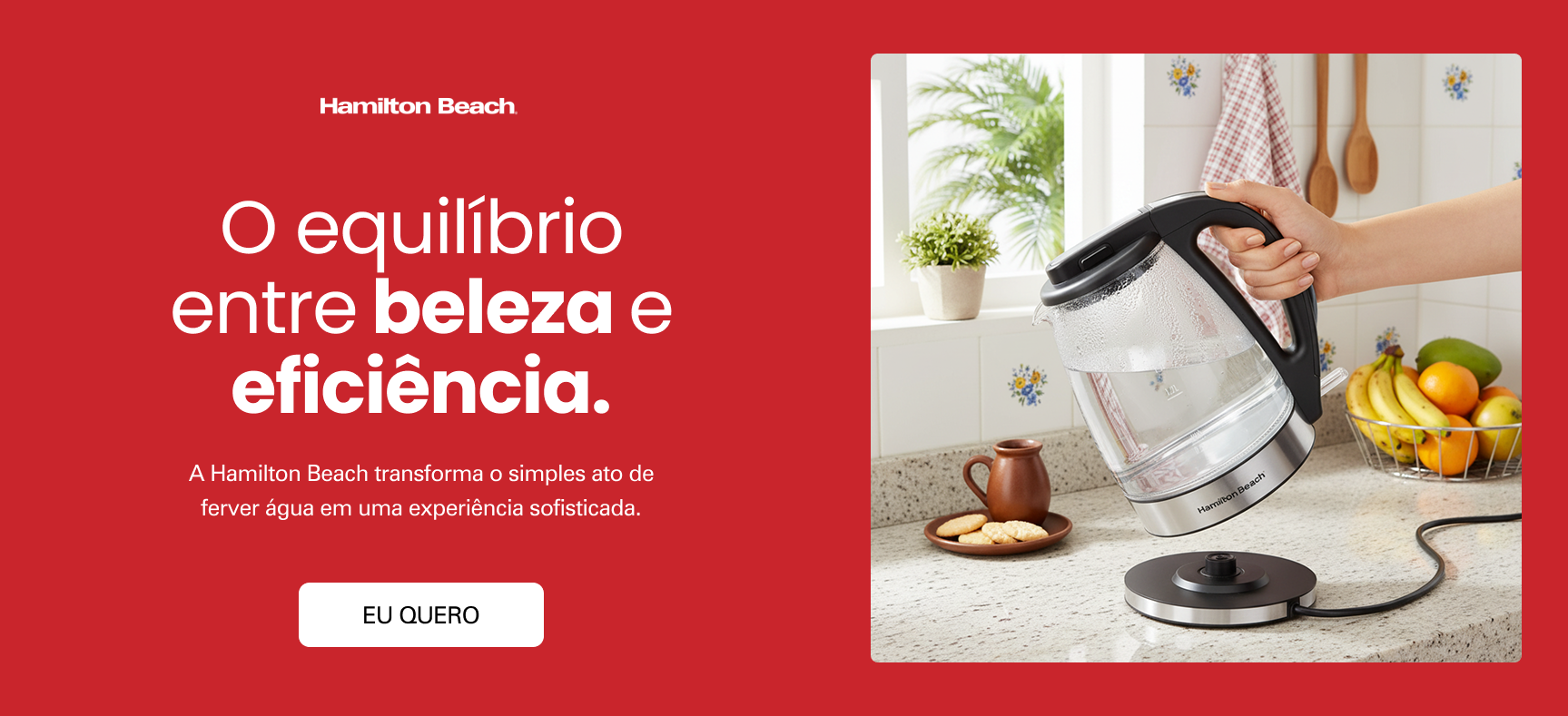 Mais rápida que um micro-ondas e mais segura que uma chaleira comum, a Chaleira Elétrica Hamilton Beach é a escolha ideal para quem busca praticidade e estilo. Adquira já a sua!